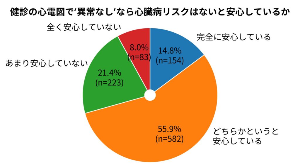 「会社の健康診断や人間ドックなどで行われる心電図検査(数十秒)で異常が出なければ安心するか」という質問に対し、