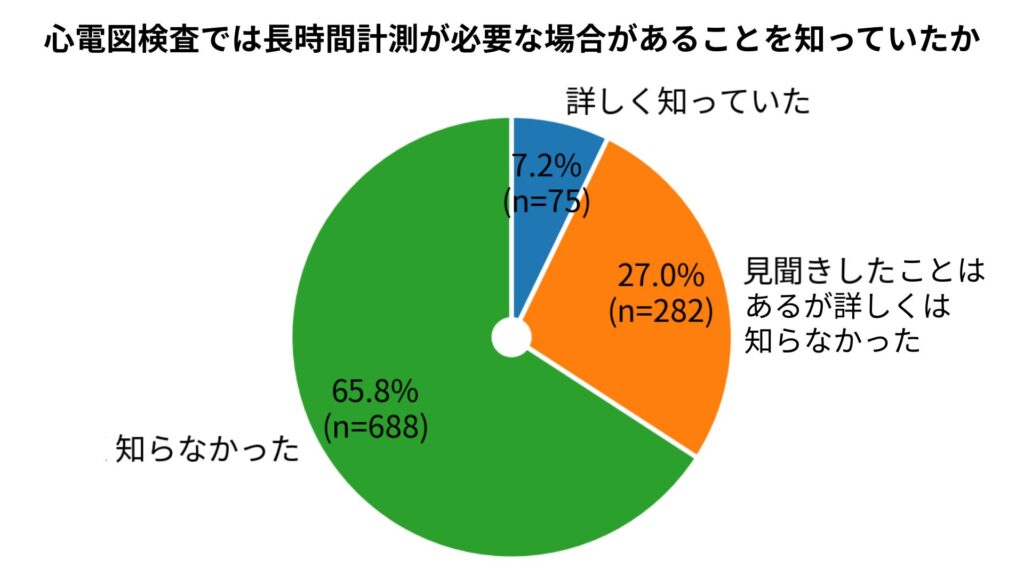 という結果となり、約3人に2人が長時間心電図検査の必要性を認識していないことが明らかになりました。